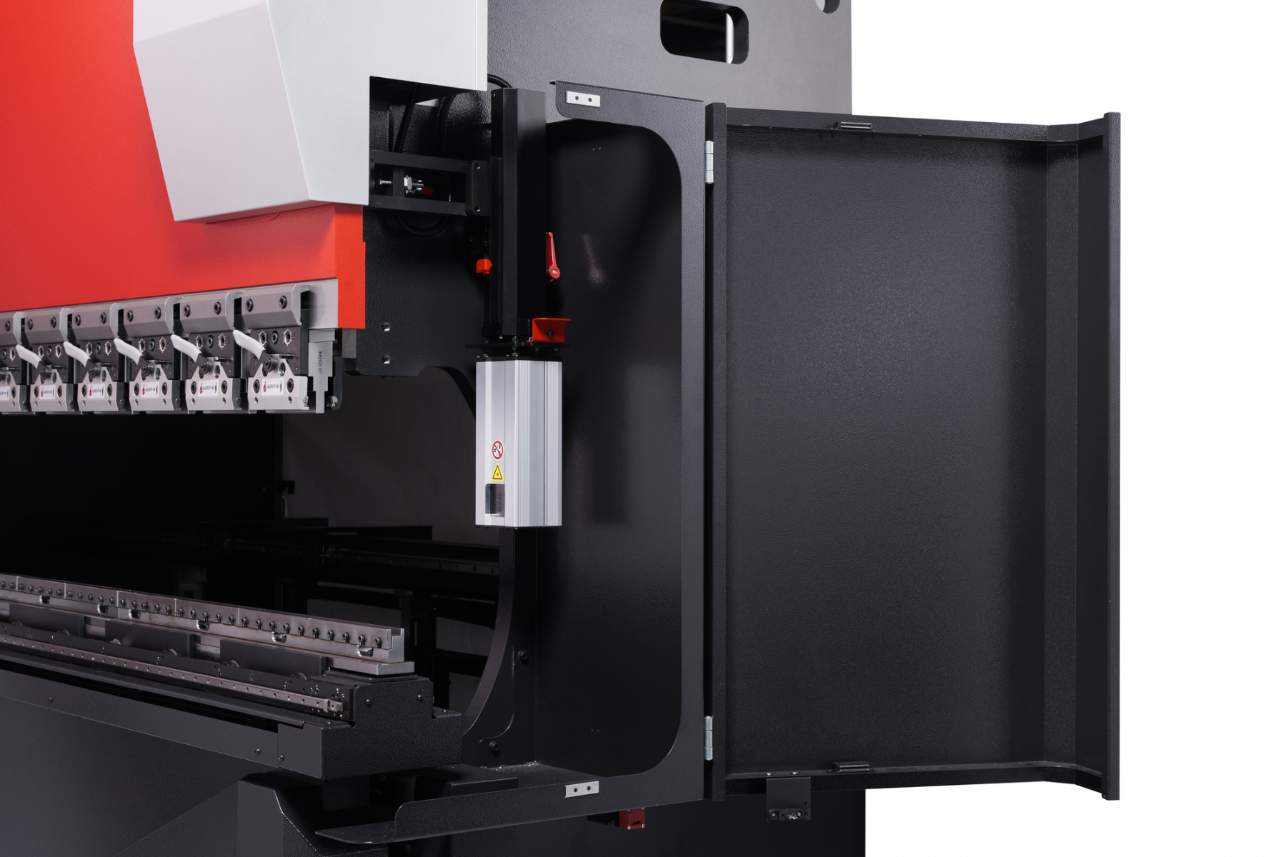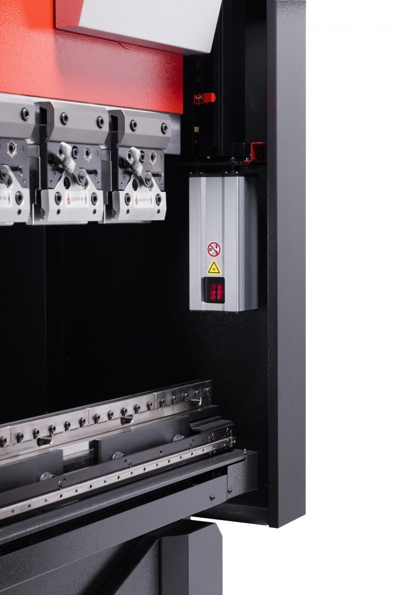 Nový dvojosí zadný doraz ohraňovacieho lisu SRB-1003 je presnejší a rýchlejší než u predchádzajúceho modelu. Dorazové palce sú vymeniteľné, aby bolo možné zvoliť najvhodnejšie riešenie pre konkrétnu výrobu dielov.